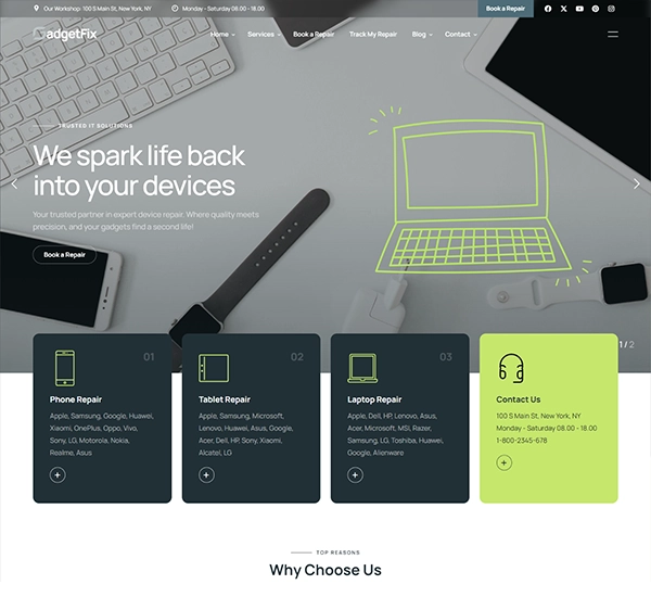 We service a wide range of gadgets including smartphones, tablets, laptops, desktops, smartwatches, and gaming consoles.
